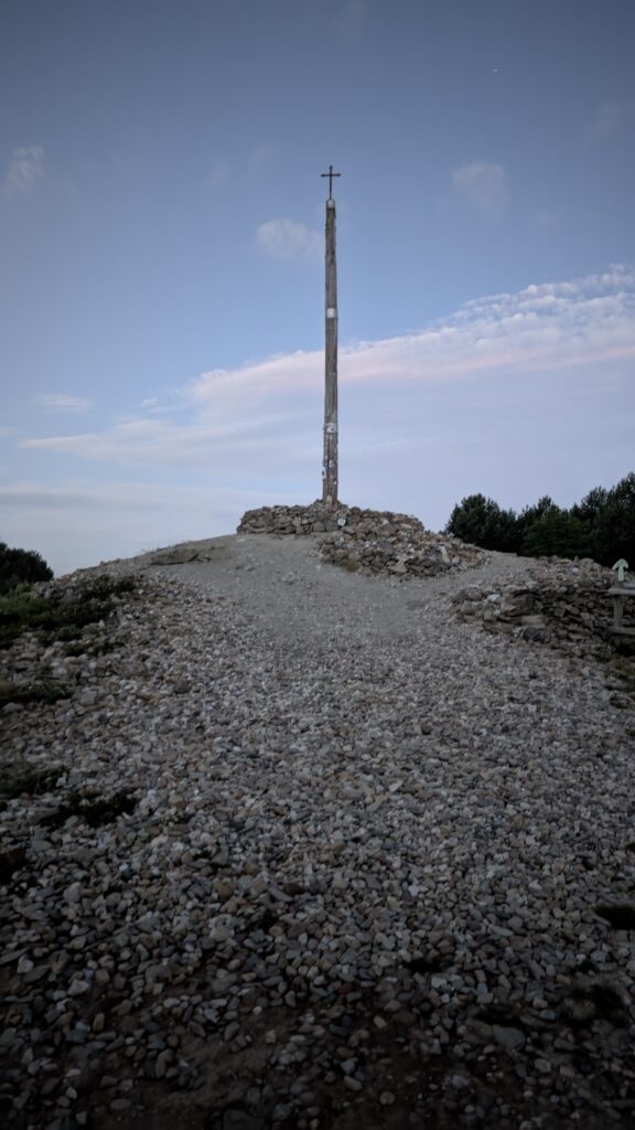 Idag blev det så dags att gå till Järnkorset, Cruz de ferro, det kanske mest kända landmärken på Caminon. Ett par kilometer uppför i mörkret men med gryningen på väg, och så var jag där. Jag la dit en sten som traditionen bjuder, helst en sten hemifrån, men en spansk sten fick duga.