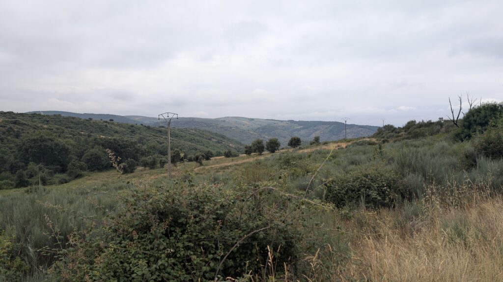 Sen var det 6 kilometer med lätt uppförsbacke till Caminons högsta punkt, 1505 meter. Konstigt nog fanns ingen markering utmed stigen. Utsikten var det heller ingen, eftersom jag stog mitt i ett moln 😁